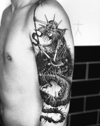 Régalez vos yeux sur les tatouages sinistres sur le thème médiéval de Christopher Jade. Les amateurs de Dark Souls seront intrigués, de même que quiconque ayant un penchant pour les sujets les plus sombres du blackwork; des chevaliers démoniaques, des nécromanciens, des fantômes pourris et des bêtes mutantes parcourent son portefeuille comme les maudits évadés d'une ancienne dimension infernale.